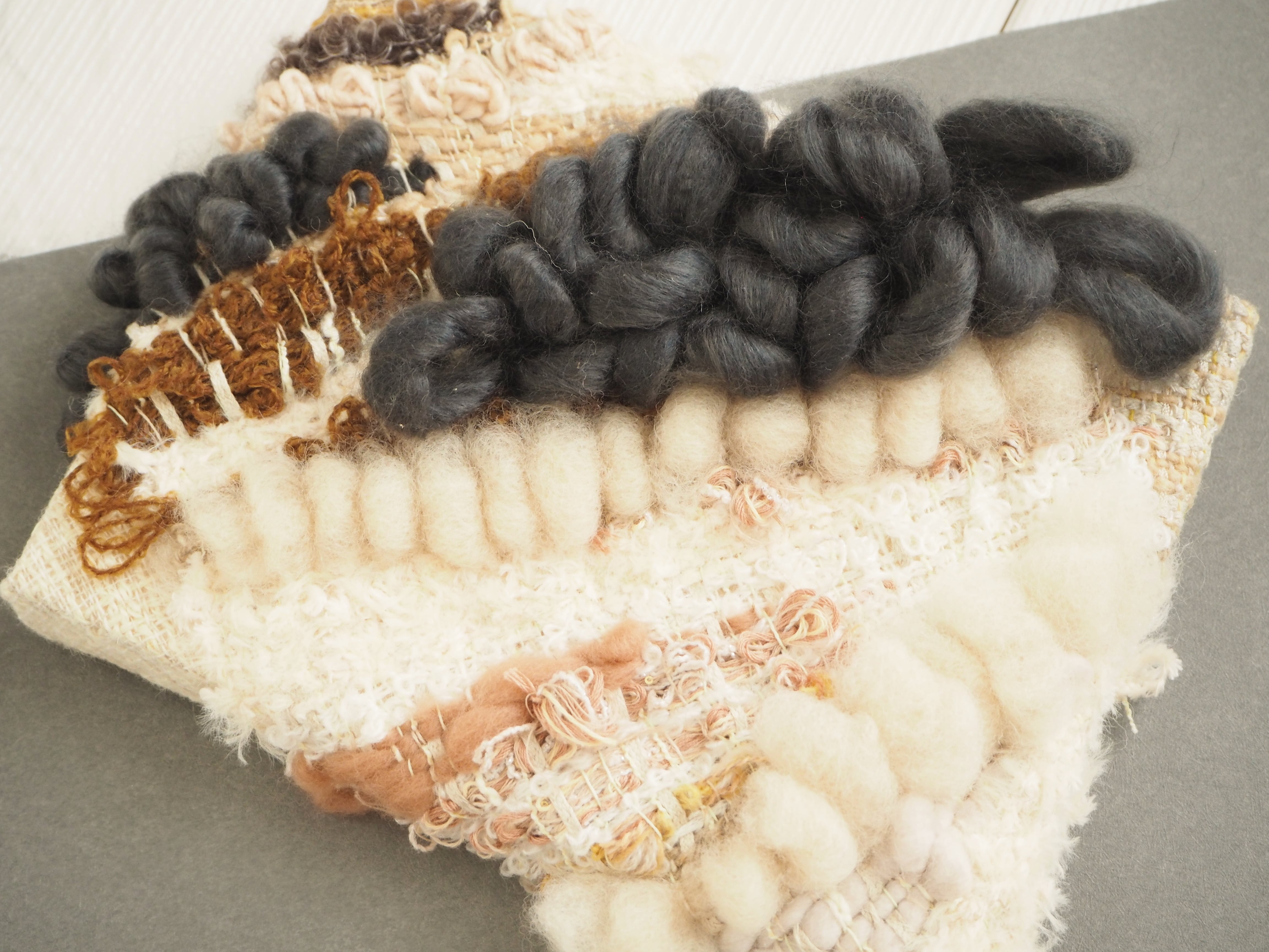 糸や原毛がふわふわと飛び出て、まるで咲いたような作品。