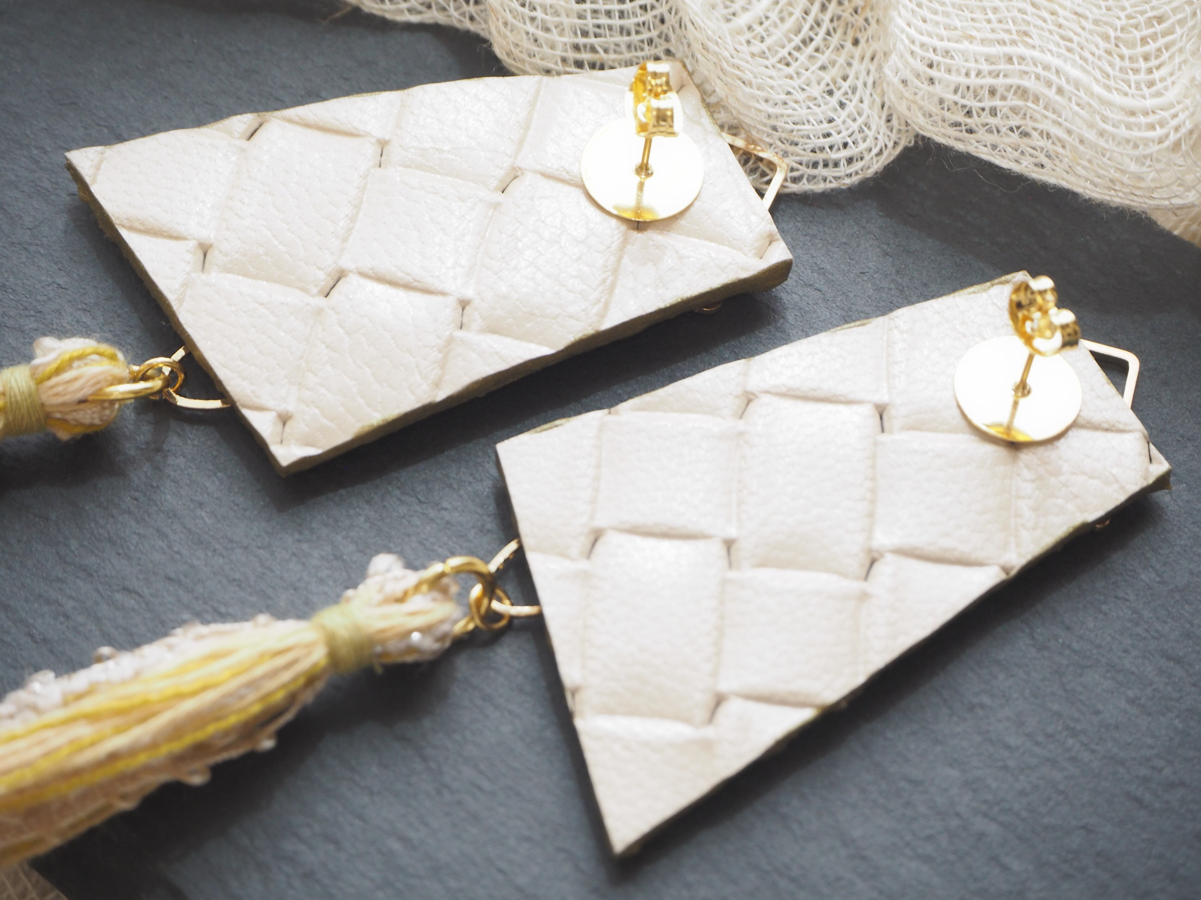 手織り布の持つ柔らかい雰囲気と、揺れるタッセルは女性らしさを演出してくれます。