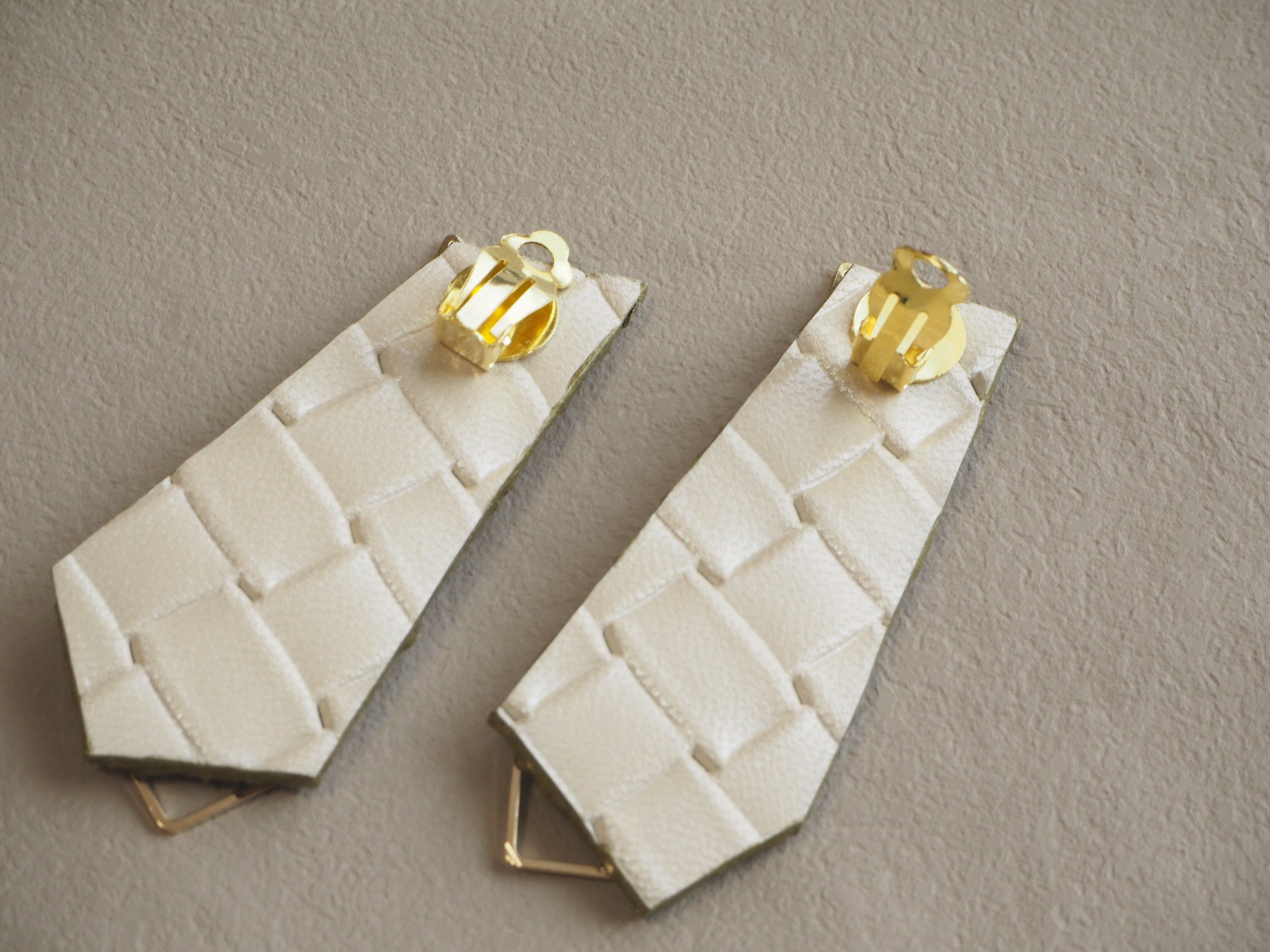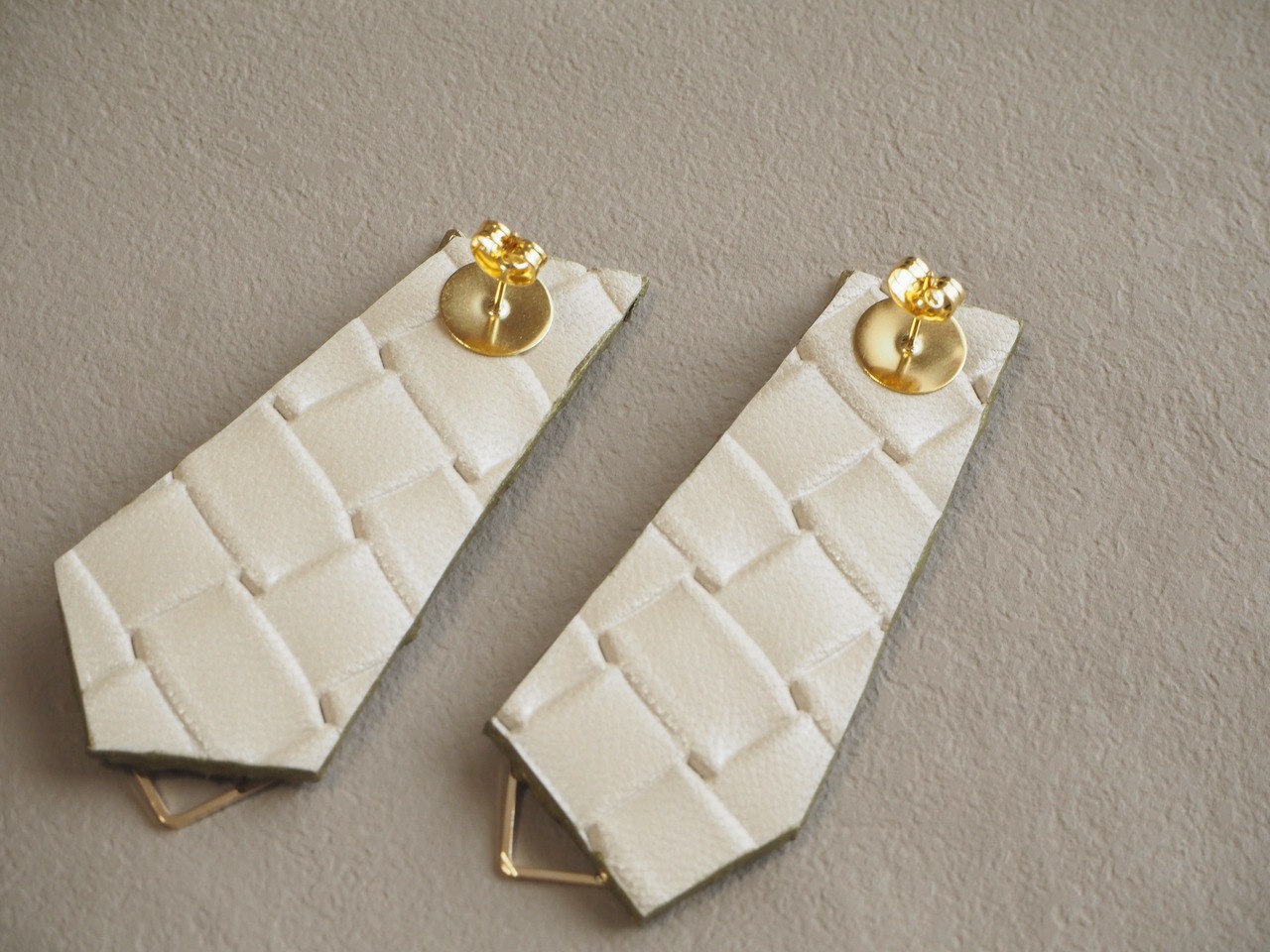 手織り布をコーティングしたパーツによる、大ぶりのアクセサリーです。
