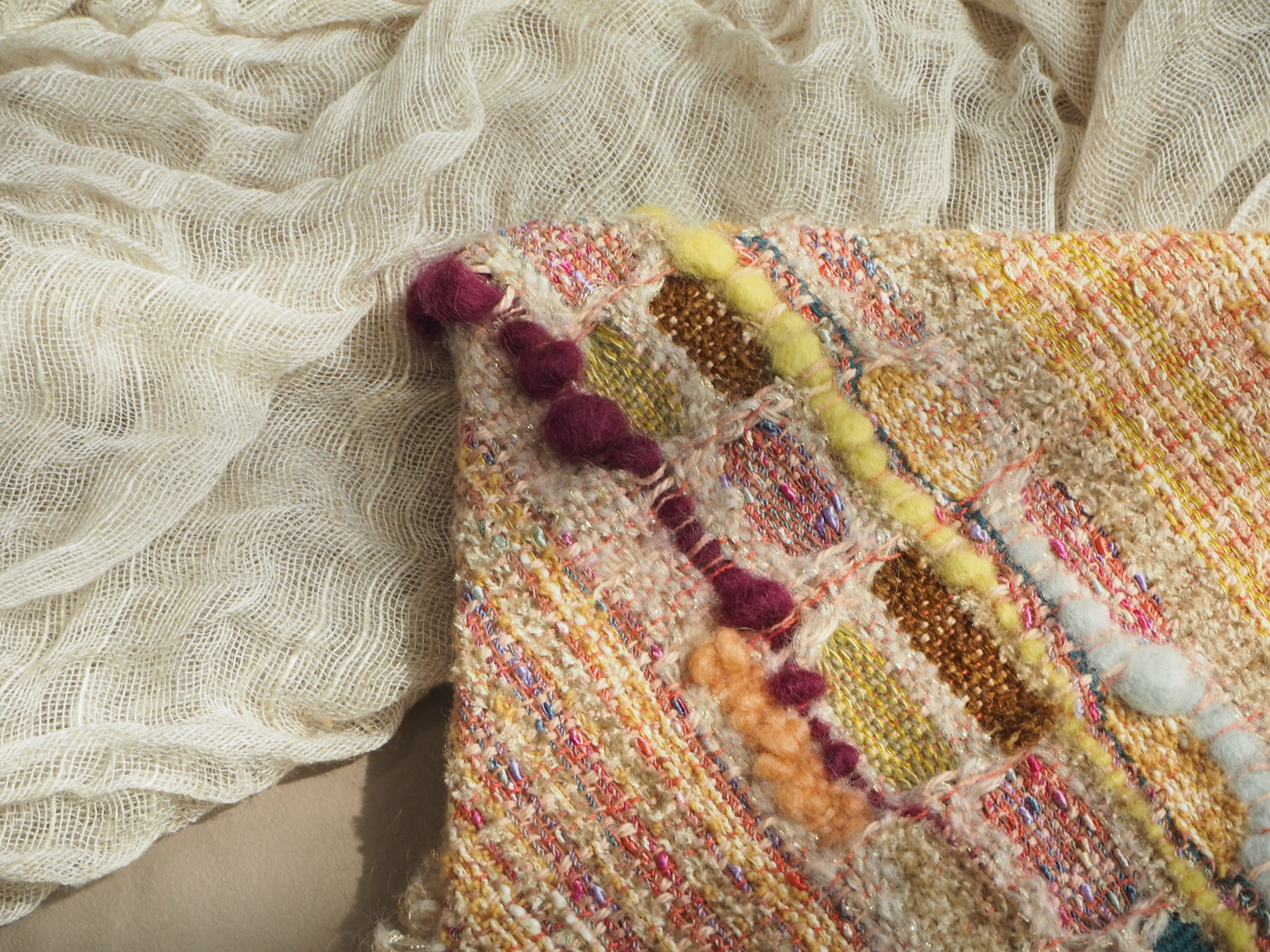 手織りならではの立体感と柔らかさを持つアートな存在感が、生活空間を豊かに彩ってくれます。