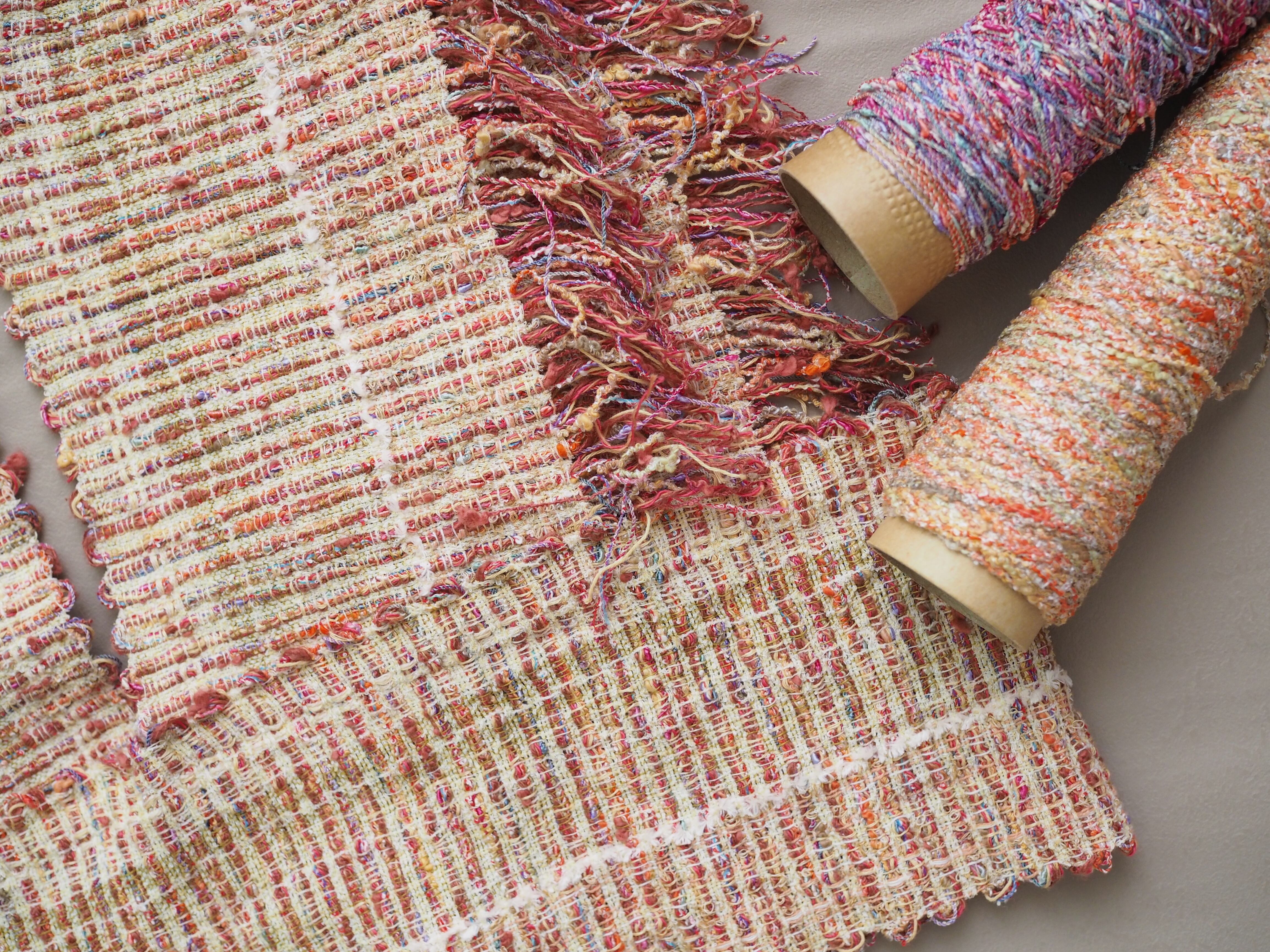 たて糸とよこ糸が合わさった織り生地部分と、よこ糸のみのフリンジ部分のテクスチャの違いにも、ぜひ注目していただけると嬉しいです。